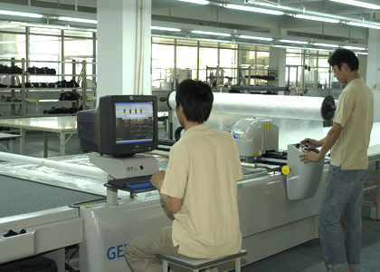 公司采用CAD計算機(jī)輔助排料系統(tǒng)進(jìn)行排料,該系統(tǒng)準(zhǔn)確、高效。鋪料機(jī)代替手工鋪料的優(yōu)點(diǎn)使鋪料均勻、整齊、松緊適宜、降低工人勞動強(qiáng)度。